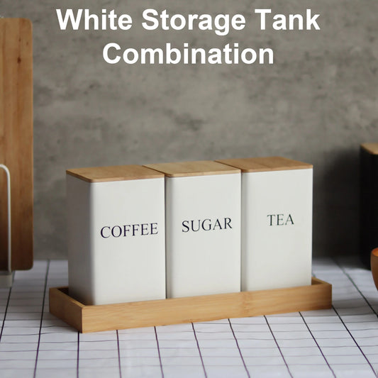 Kitchen Canisters Coffee Tea Sugar Flour Metal Tin Jars Nest Food Storage Container Farmhouse Decor Countertop Pantry Organizer