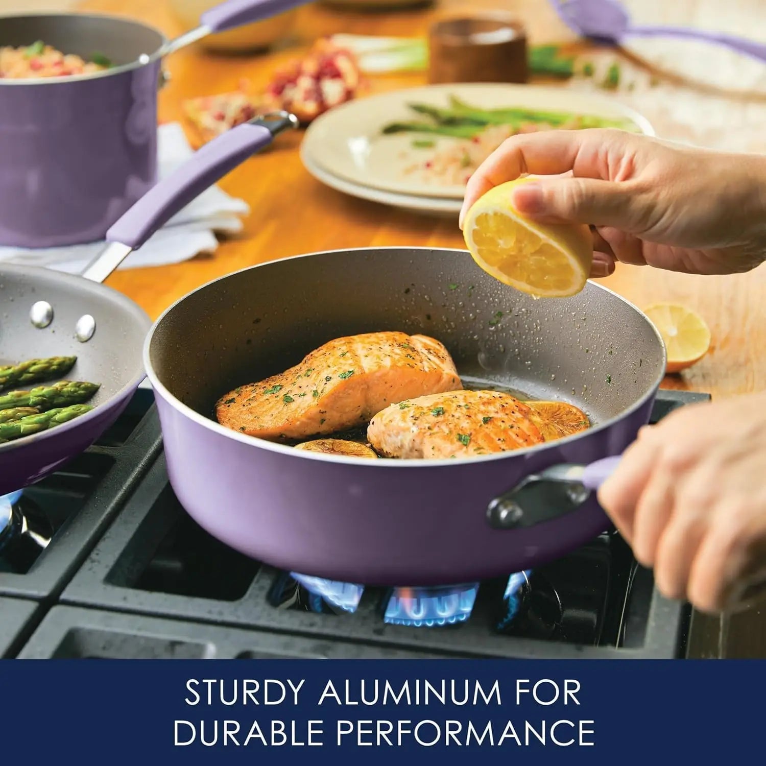 Cucina Nonstick Cookware Pots and Pans Set, 12 Piece, Lavender Purple
