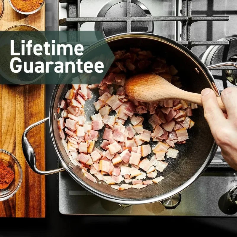 Designed to last, this hybrid pan resists scratches and wear even with metal utensils, making it a long-lasting addition to your kitchen.