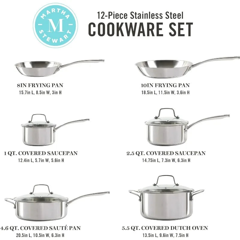 - WHAT'S IN THE BOX: Set includes two stainless steel saucepans with lids (1.5 quarts and 2.5 quarts), two stainless steel frying pans (8-inch and 9.5-inch), one 4-quart stainless steel sauté pan with lid, one 5-quart stainless steel Dutch oven with lid