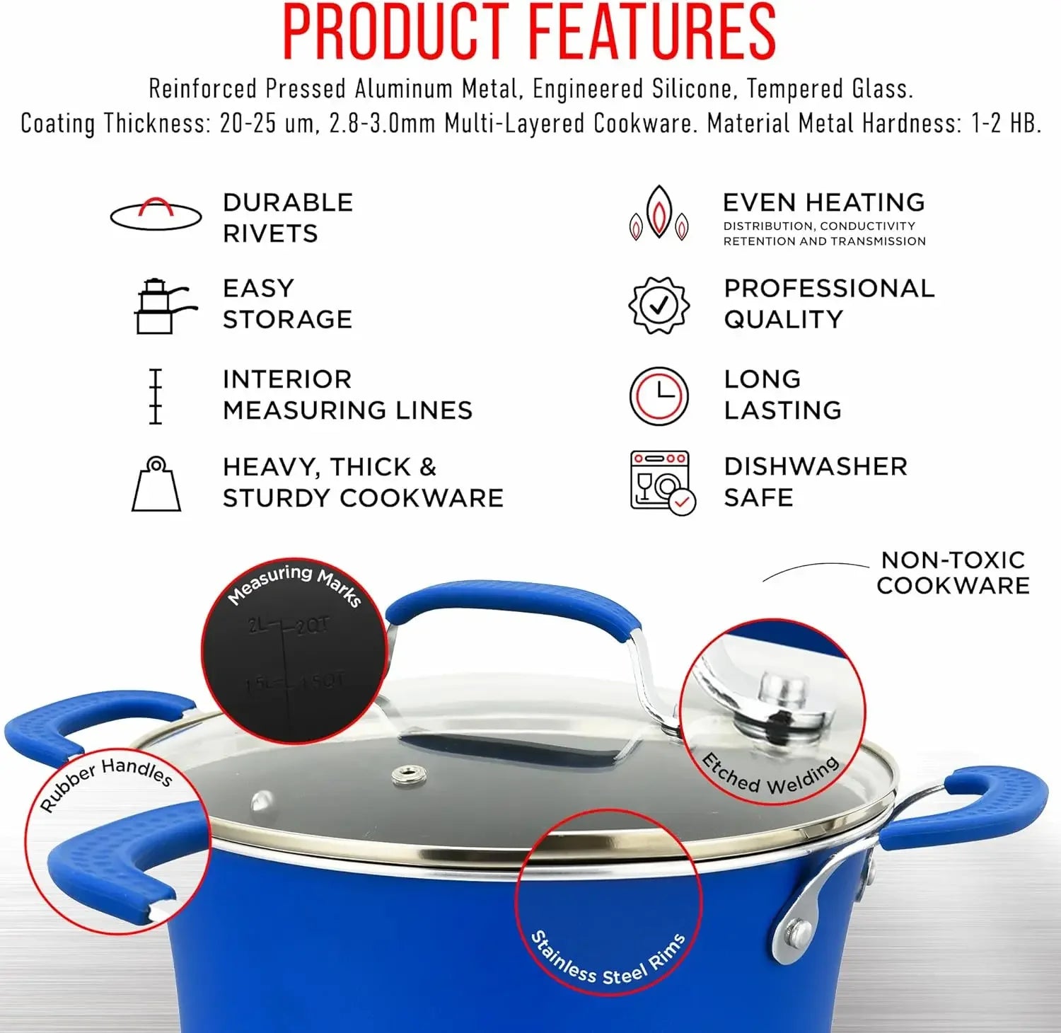 Each piece is designed with comfortable, heat-resistant handles that provide a secure grip and make cooking safer and easier. Enjoy stability and confidence as you move from cooktop to oven to table.