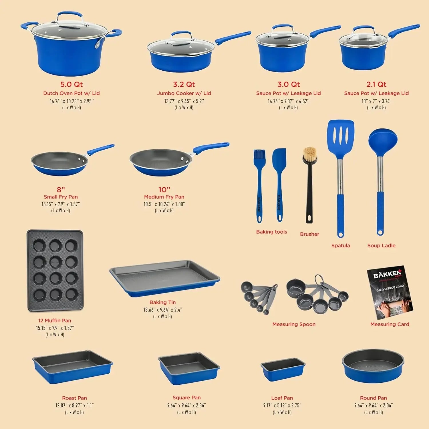 Transform your kitchen into a stylish, efficient space with this versatile and visually striking Multi Blue 23-Piece Set, ready to support all your cooking and baking adventures.