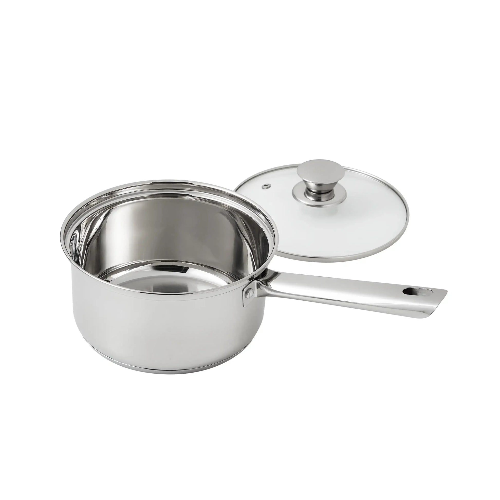 Prepare everything you need for amazing meals with the Stainless Steel 10-Piece Cookware Set. Including one 8.5" sauté pan, one 1-quart saucepan, one 2-quart saucepan, one 4-quart Dutch oven, 3 vented glass lids, 1 solid serving spoon, 1 slotted serving spoon, and 1 slotted spatula, it's perfect for cooking large meals for any occasion. Crafted with ultra-durable, sleek stainless steel and transparent glass for great performance and style, this kitchen set is sure to coordinate with your cookware collection. The pots and pans feature riveted handles, heat- and shatter-resistant glass lids, and tri-ply bases for even heat distribution and quick cooking. Not suitable for induction cooktops. It's dishwasher safe, for easy cleanup. Ideal for nutritious, everyday family meals or for entertaining guests on special occasions, the practical Stainless Steel 10-Piece Cookware Set is a must-have essential for any kitchen.